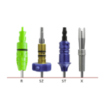 They are differentiated by the type of active tip, type of fitting and inner and outer diameters: