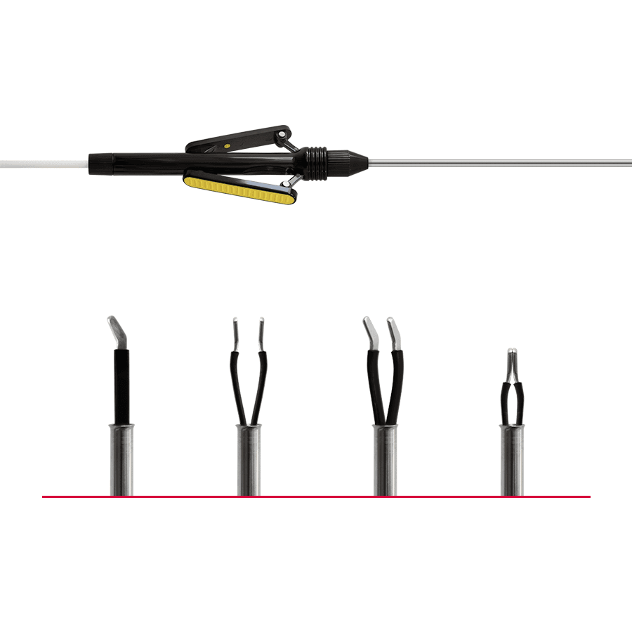 Its polished, noble material active tip prevents tissue from sticking to it and transfers heat away from the tip, preventing adjacent tissues from overheating.