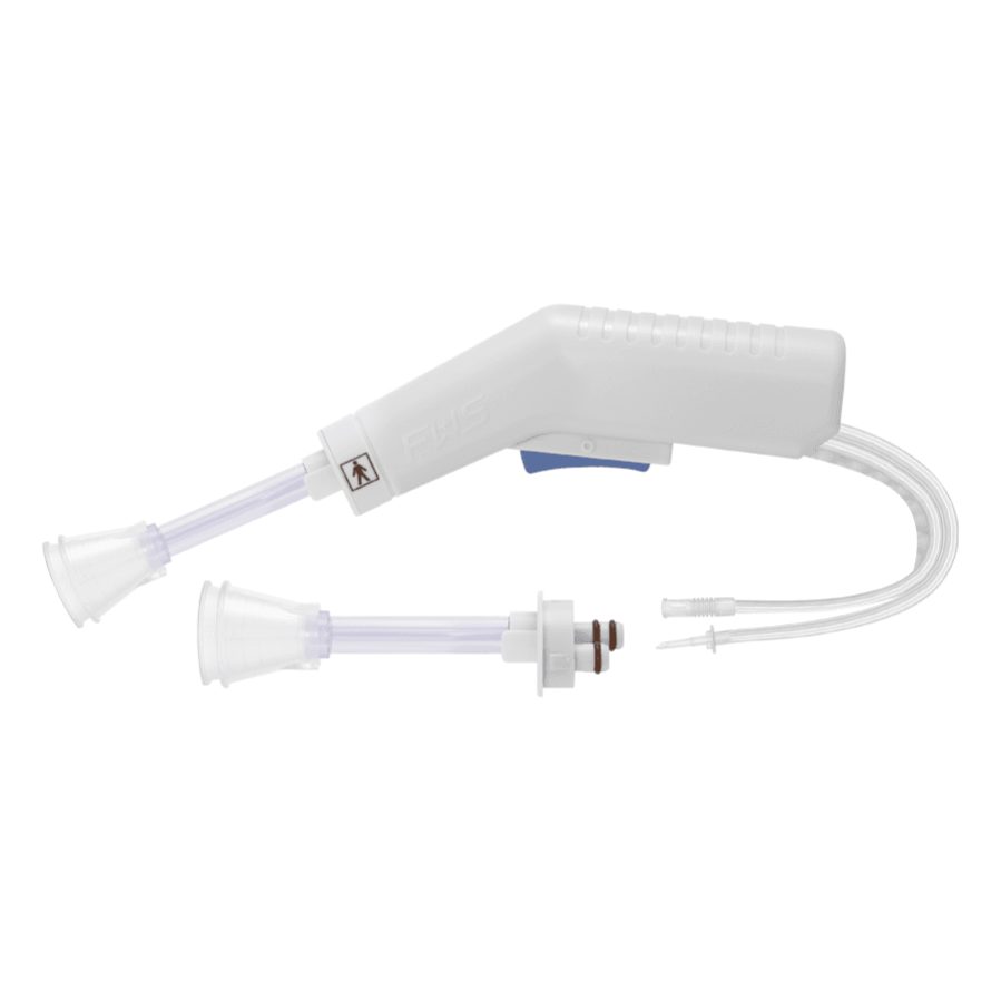 Razek Pulse Pro is used to perform rinsing by pulsed pumping of fluids directly into the tip of the product’s cannula concomitantly with suction to conduct waste such as blood, soft tissue, necrotic tissue and fluids also directly into the tip of the cannula. Suction is performed when connected to a hospital aspirator.
