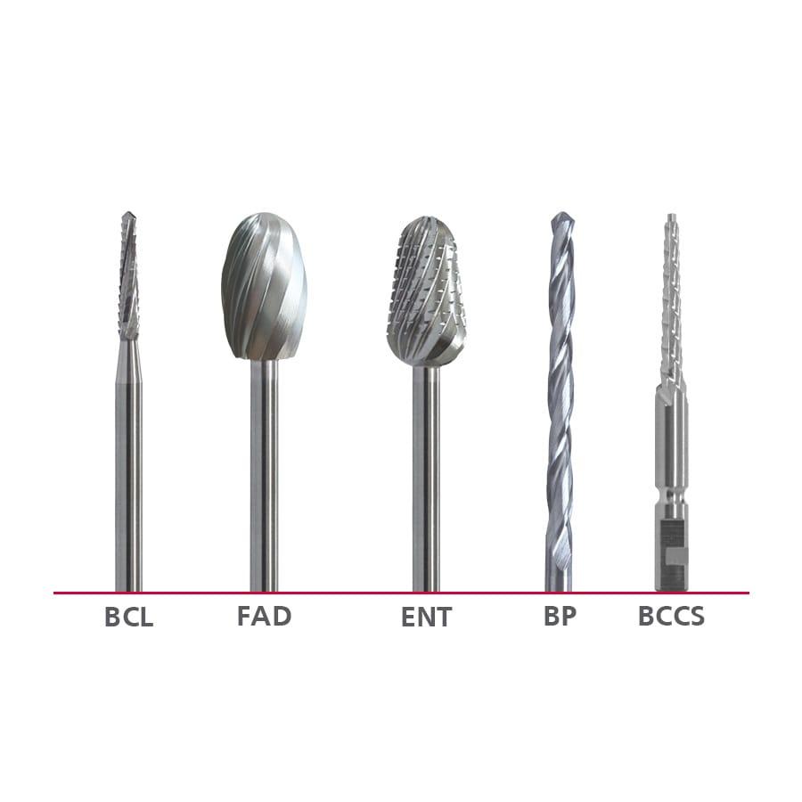 A família de Fresas Cirúrgicas Razek tem por finalidade realizar perfuração, corte, acabamento, desbaste e raspagem óssea em procedimentos cirúrgicos.
