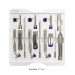 Fornece ao cirurgião os instrumentos necessários para a implantação dos itens do Sistema de Placas de Fixação Rígida Feet RZ, destinados ao tratamento de traumas. Cada item foi desenvolvido para uma finalidade específica durante a cirurgia.